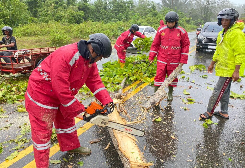Amatan media dan informasi sumber dari masyarakat melalui sambungan pesan WhatsApp terdapat 14 titik lokasi pohon tumbang di beberapa ruas jalan nasional, satu lokasi pohon menimpa rumah warga.